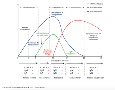 Para aclarar algunas preguntas, adjunto algunas tablas y diagramas sobre posible interpretación de resultados de la RT-PCR, y anticuerpos IgM, IgG. Os recuerdo que siempre habrá que tener en cuenta también los datos clínicos y que, ante la duda, los test se deberían repetir para confirmar.