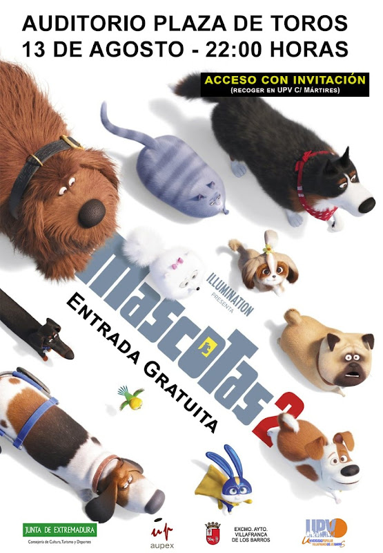 Jueves 13 de agosto: MASCOTAS 2: las entradas se pueden recoger en las instalaciones de la Universidad Popular de Villafranca (calle Mártires, en horario de 09:00 a 14:00 horas).